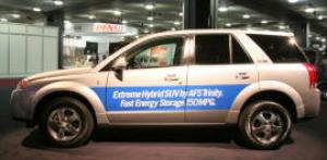 The company added its patented "fast energy" battery system to two showroom Saturn Vue Greenline hybrids to create the XH-150. Capable of going from 0-60 m.p.h. in 6.9 seconds, the XH-150 is part muscle car, part green car.